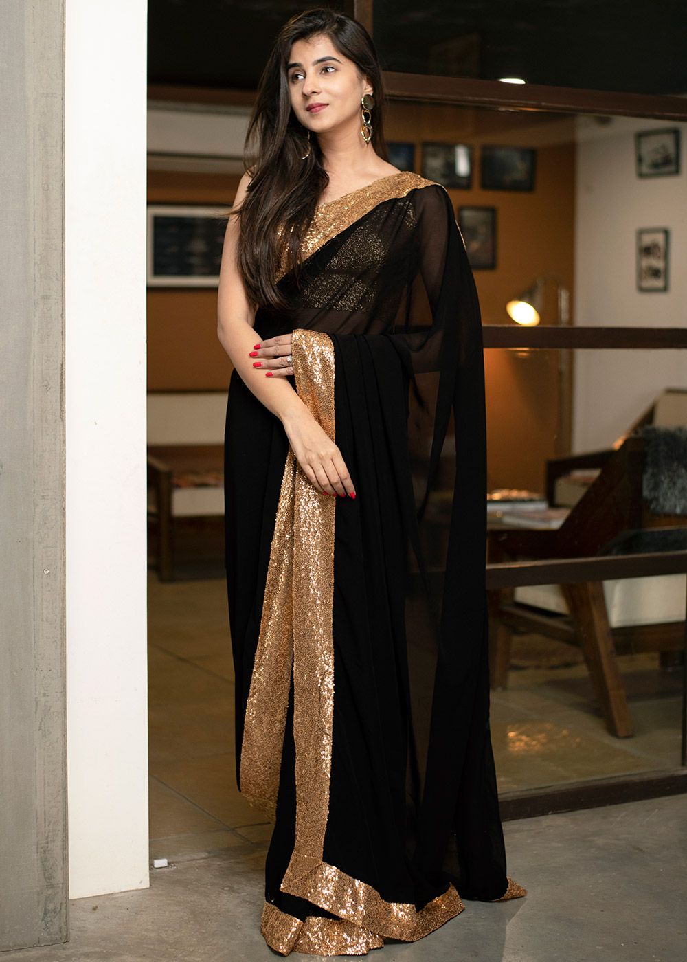 | Color | Saree: Black, Blouse: Gold |