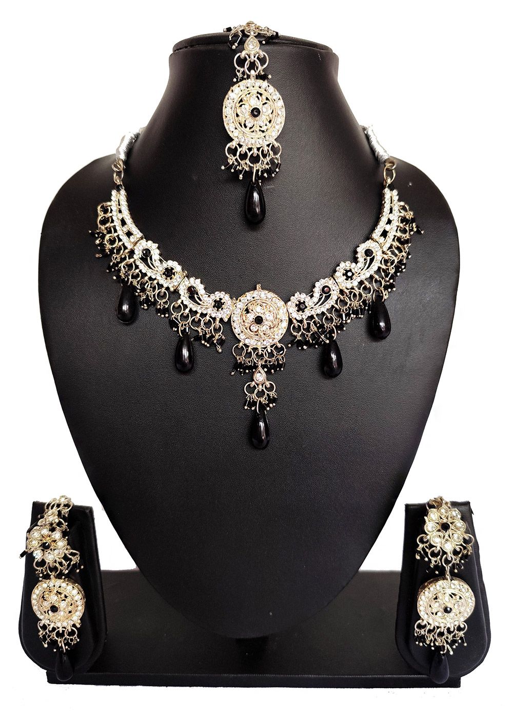 Alloy Based Black Kundan Studded Necklace SetSpecial Price US$54.40 Regular Price US$68.00