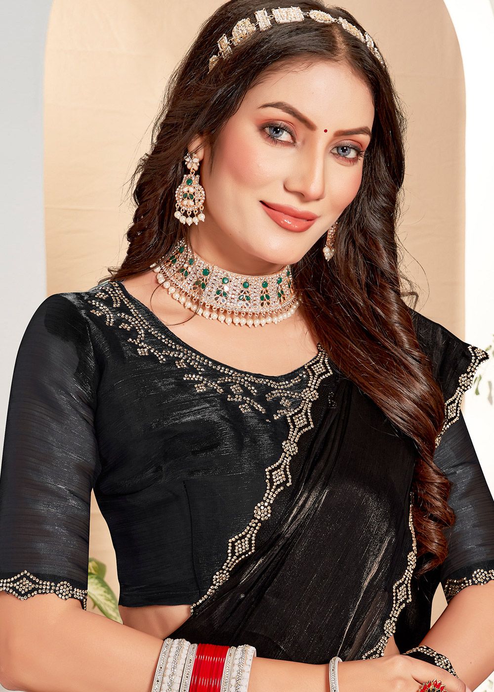 Black Stone Embellished Satin SareeSpecial Price US$88.80 Regular Price US$111.00 -