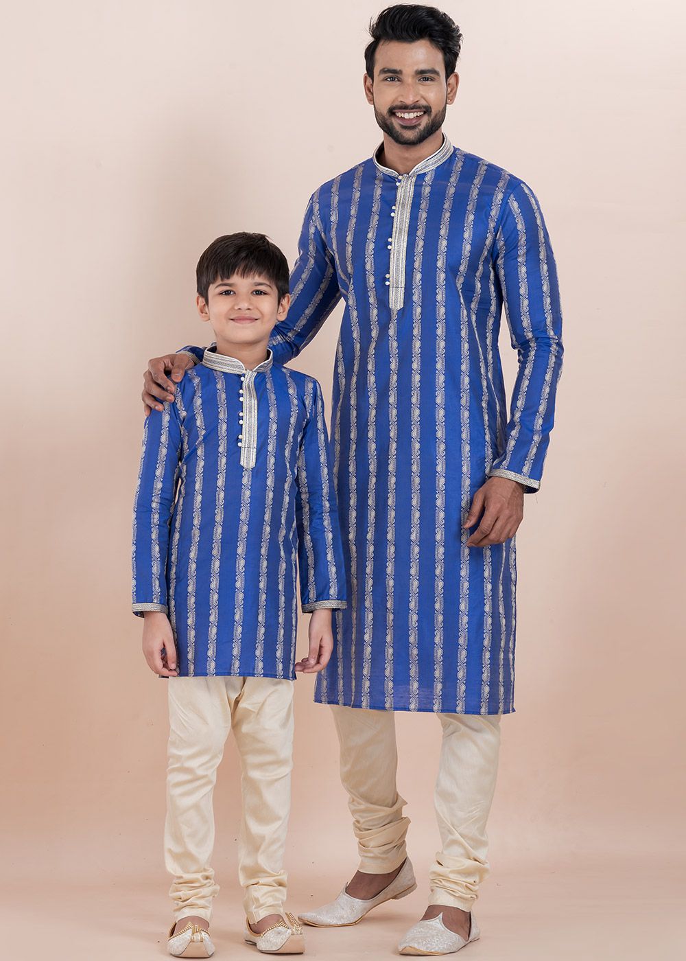 Blue Woven Jacket Style Indo Western Sherwani SetSpecial Price US$114.00 Regular Price US$152.00