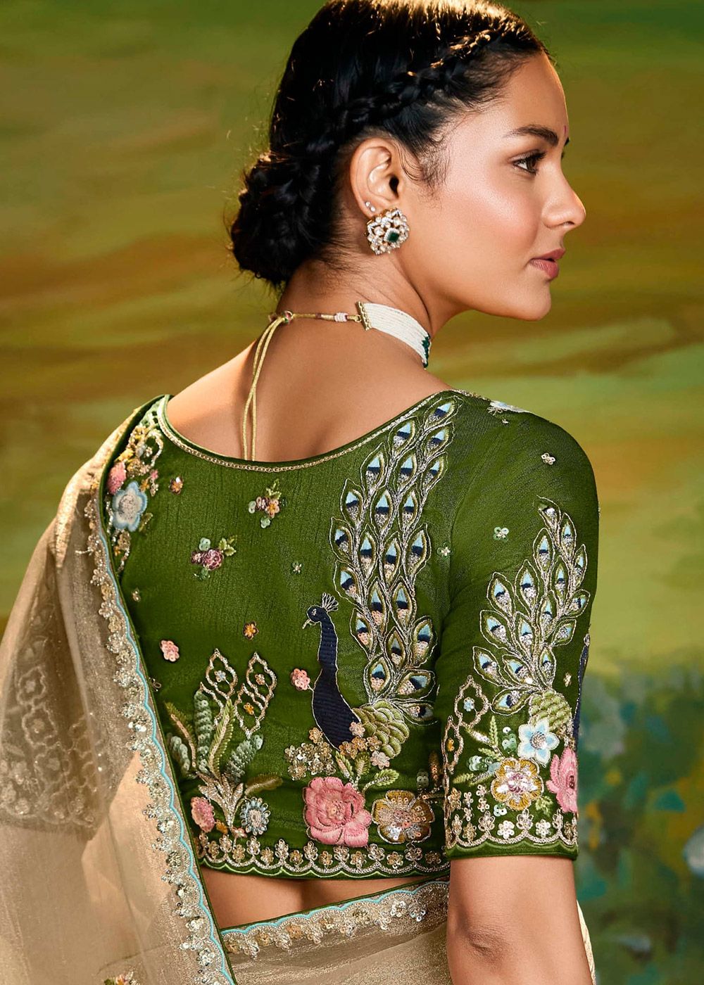 | Color | Saree: Brown, Blouse: Green |