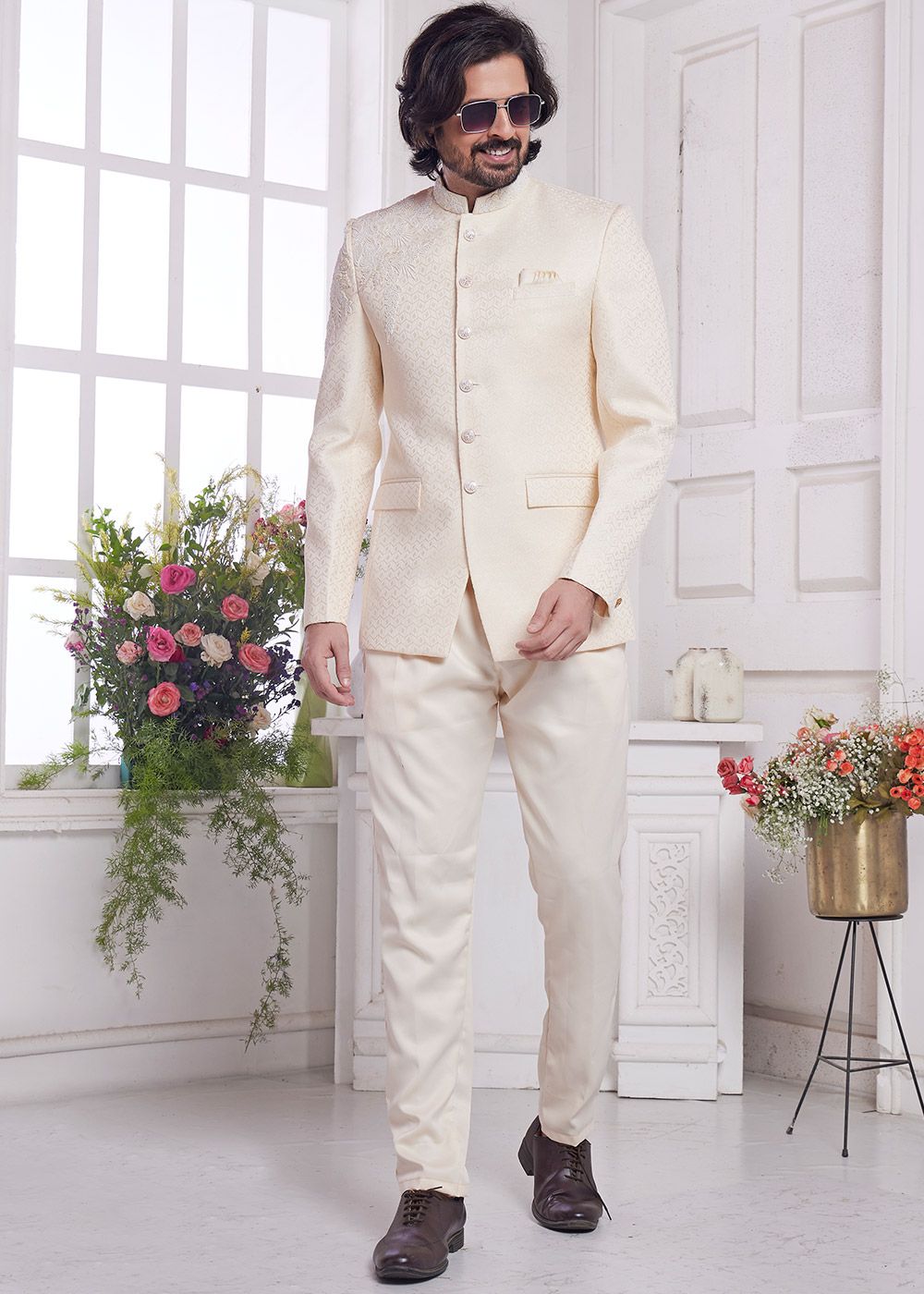 Cream Embroidered Bandhgala Jodhpuri Jacket