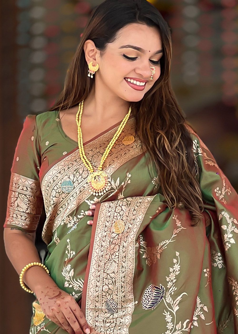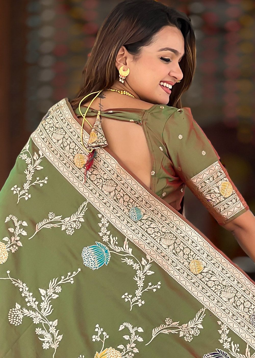 Dual Tone Mehendi Green Woven Saree