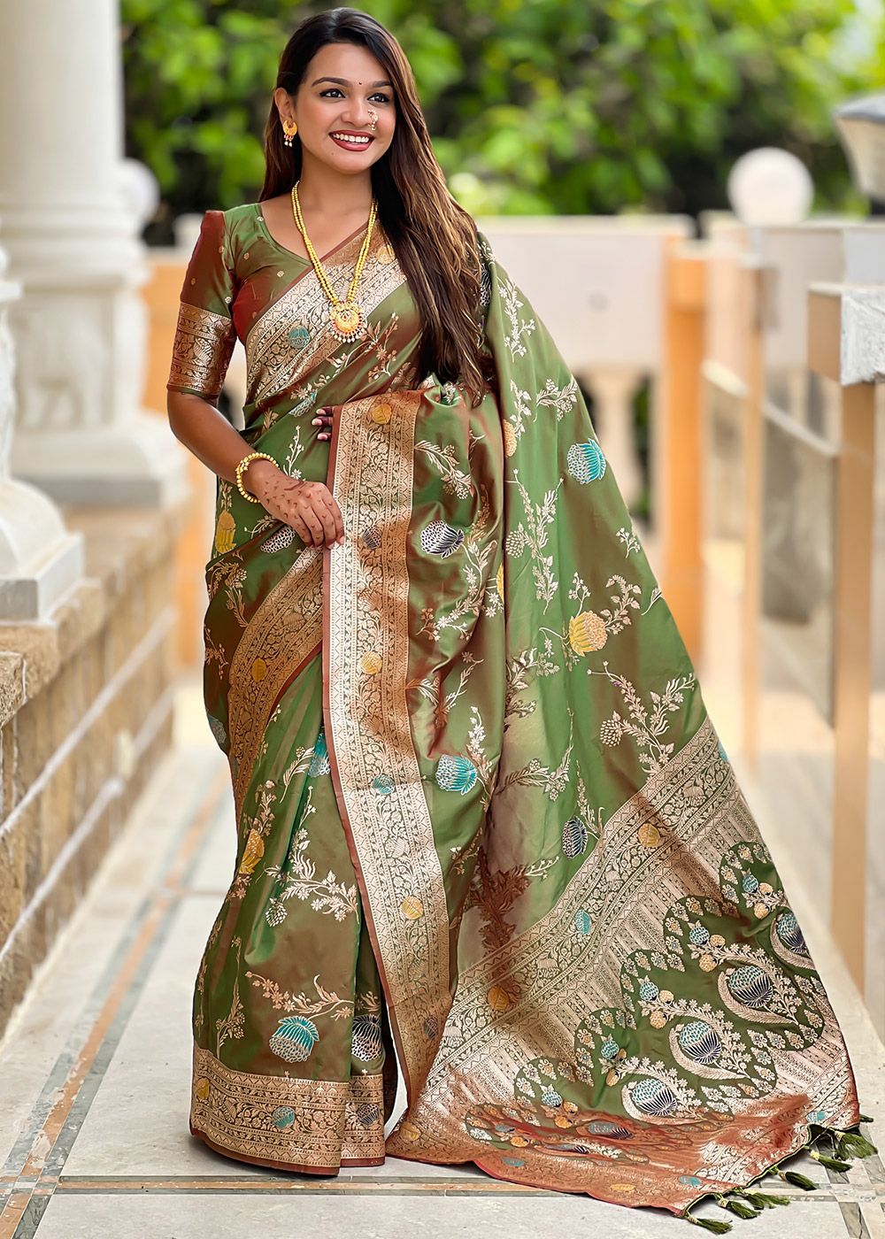 | Color | Saree: Green, Blouse: Green |