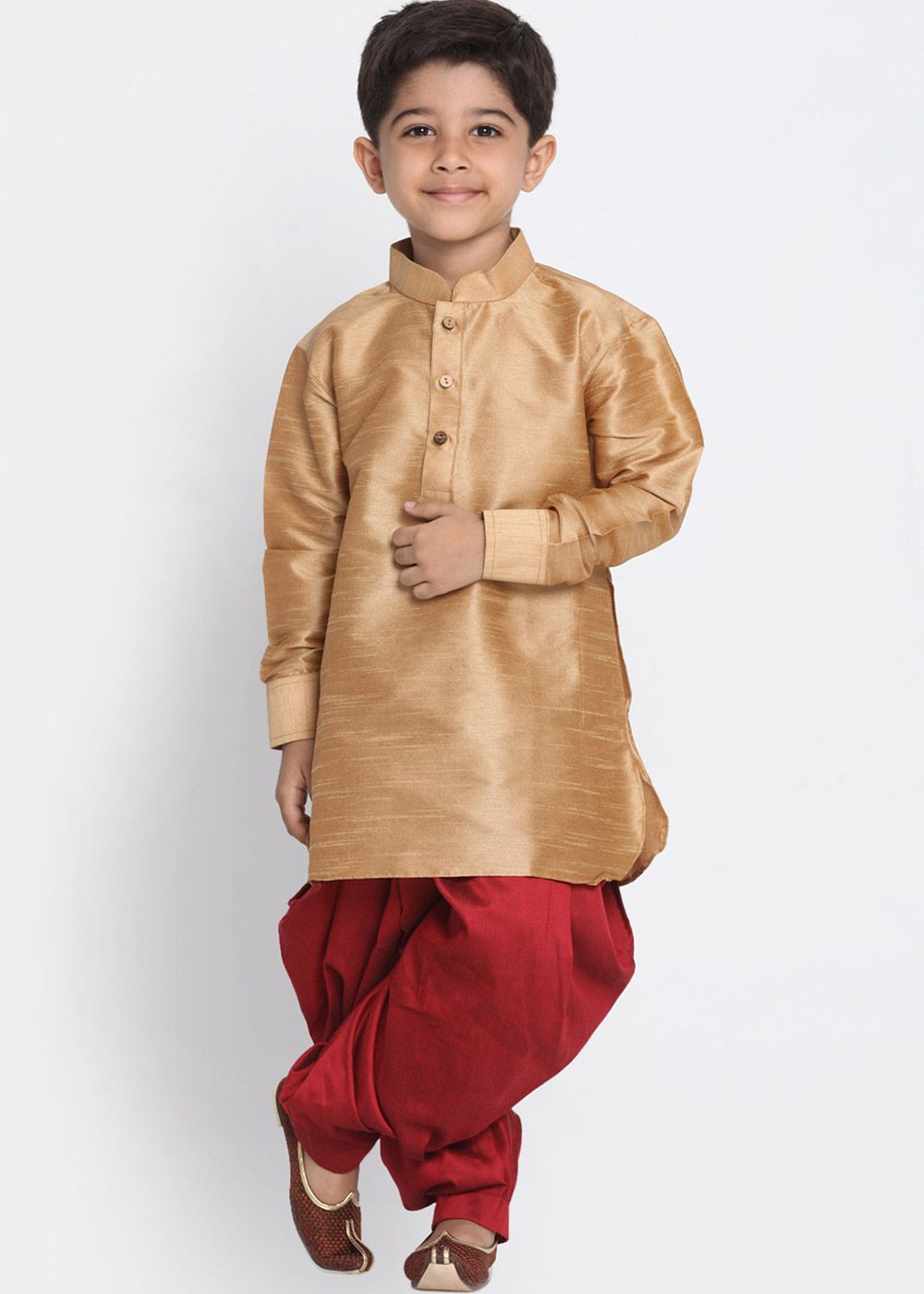 Readymade Golden Color Art Silk Kids Dhoti KurtaSpecial Price US$79.20 Regular Price US$99.00 -