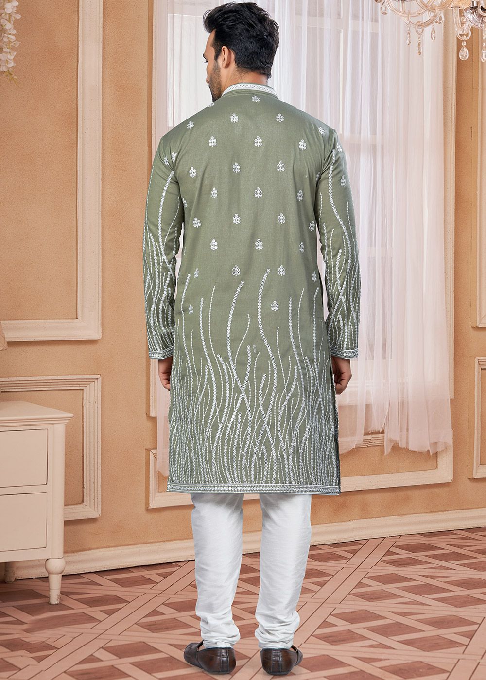 Olive Green Embroidered Jacket Indo Western Sherwani SetSpecial Price US$263.25 Regular Price US$351.00