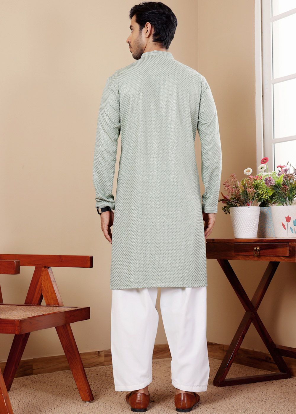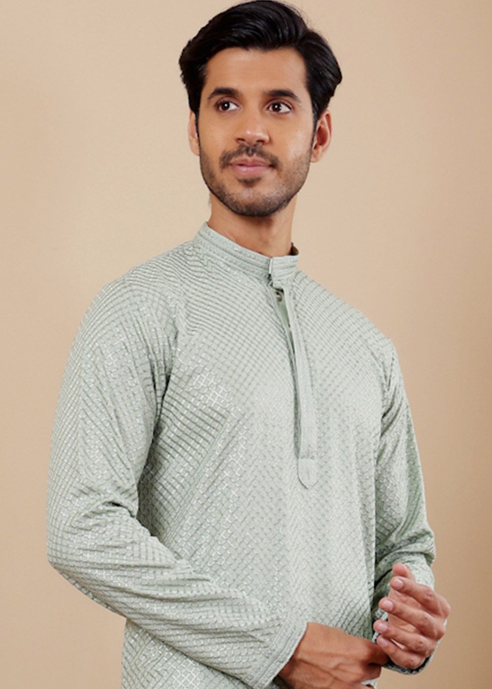 Green Embroidered Men Sherwani Set In JacquardSpecial Price US$172.50 Regular Price US$230.00 -