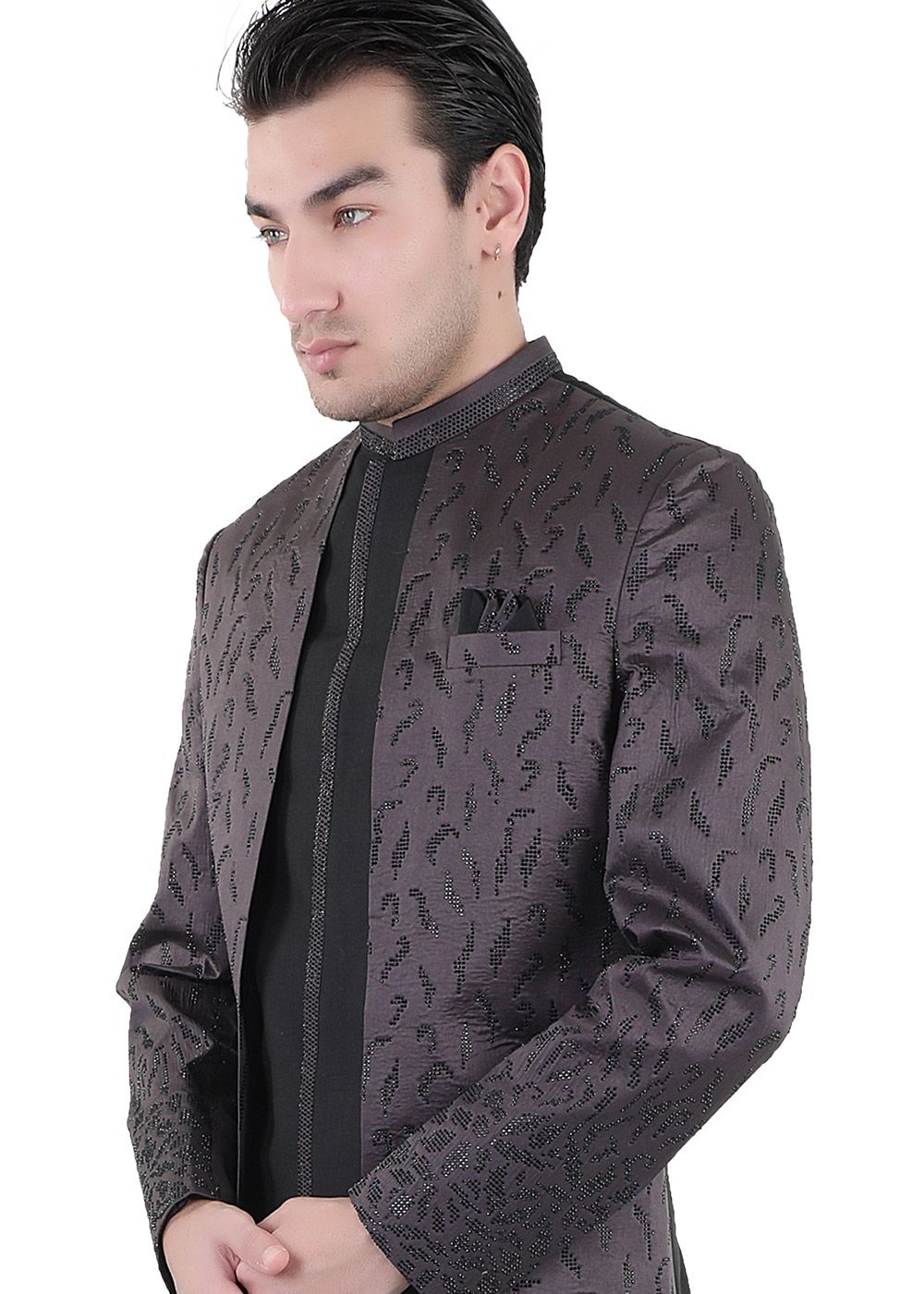 Dark Grey Embroidered Jacket Indo Western SherwaniSpecial Price US$201.75 Regular Price US$269.00 -