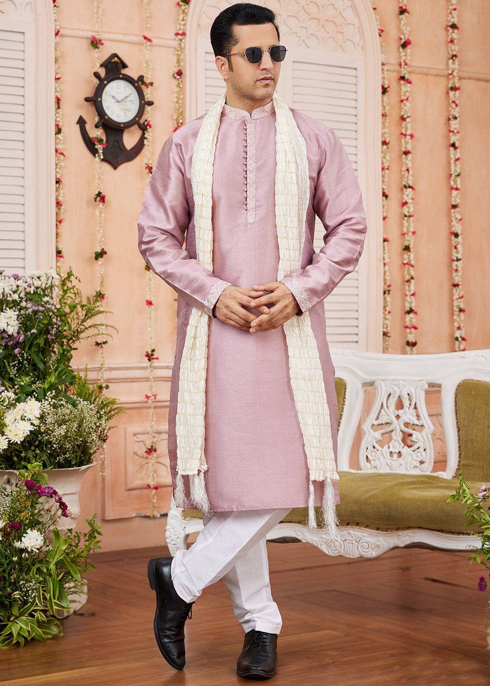 Groomsmen Purple Embroidered Men Kurta Pajama