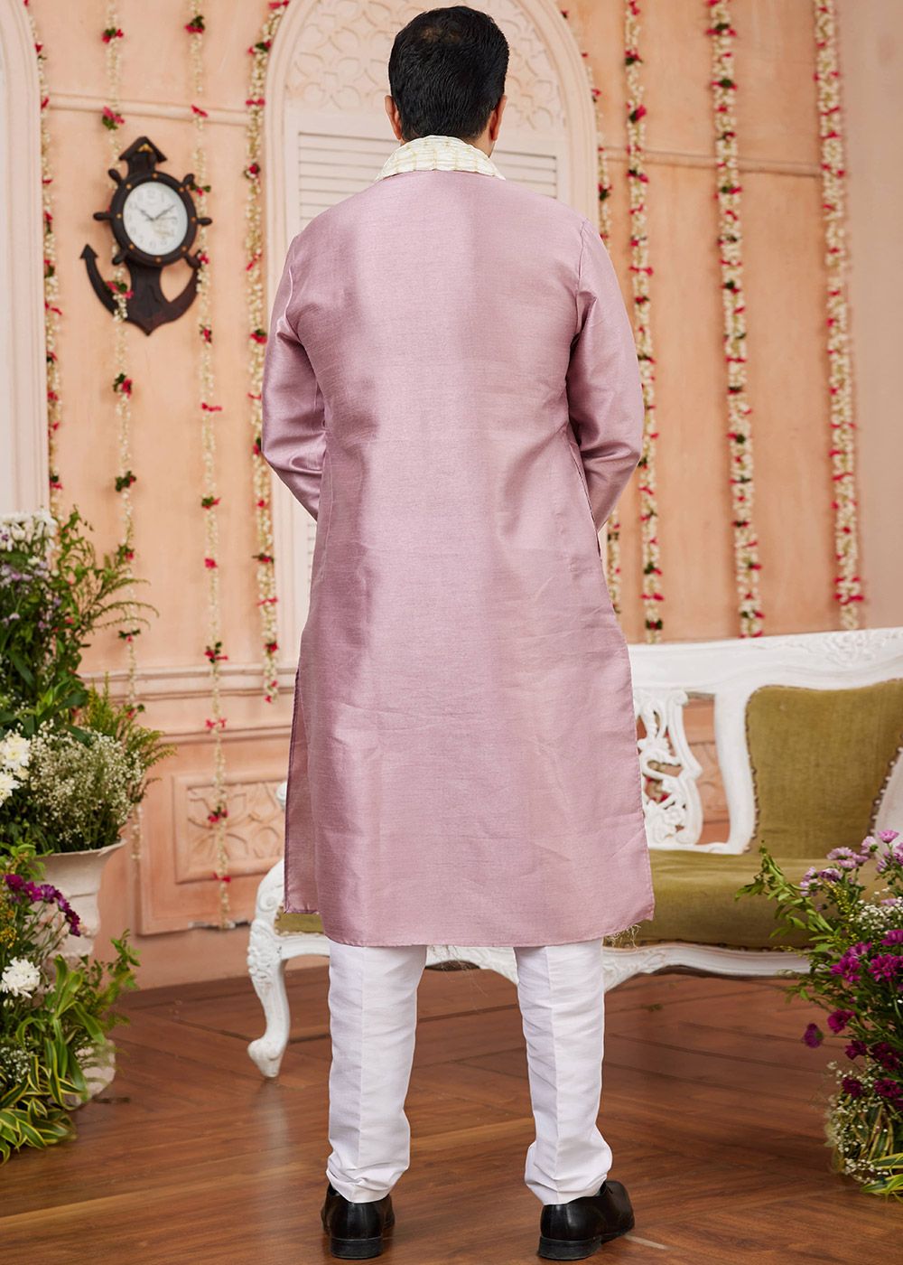 Purple Art Silk Men Kurta With PajamaSpecial Price US$55.50 Regular Price US$74.00
