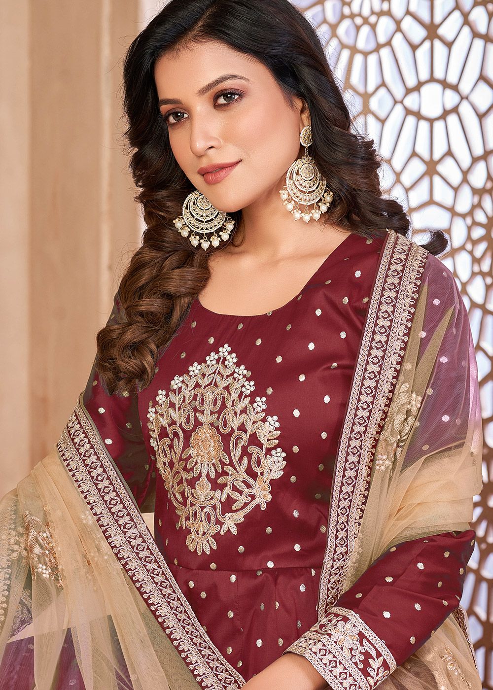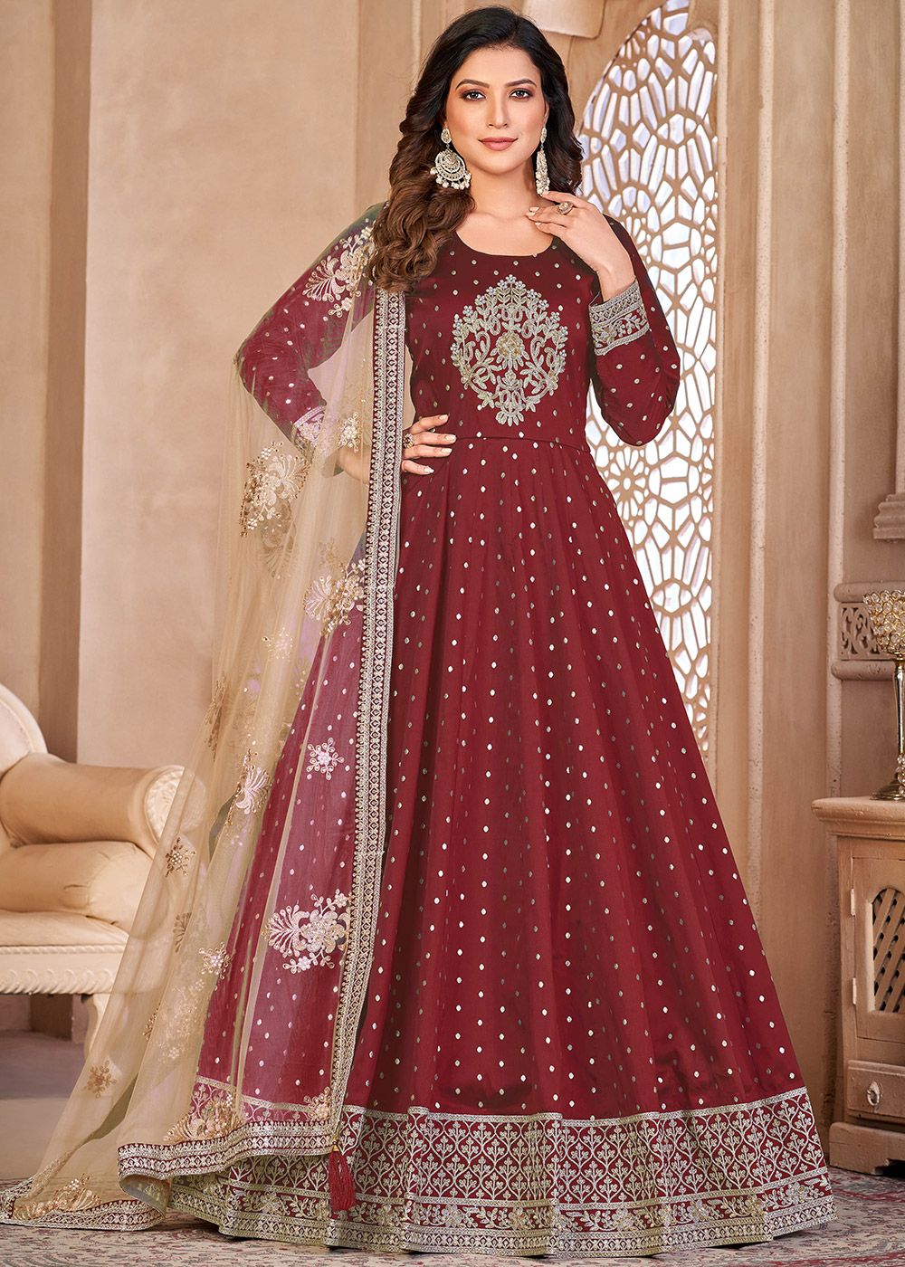 Maroon Readymade Embroidered Anarkali SuitSpecial Price US$69.60 Regular Price US$87.00 -