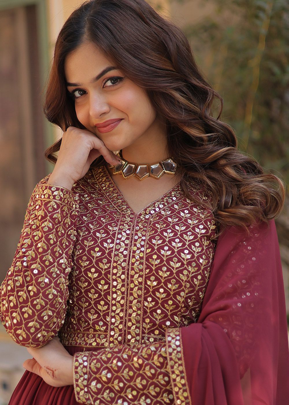 Maroon Readymade Embroidered Anarkali SuitSpecial Price US$69.60 Regular Price US$87.00