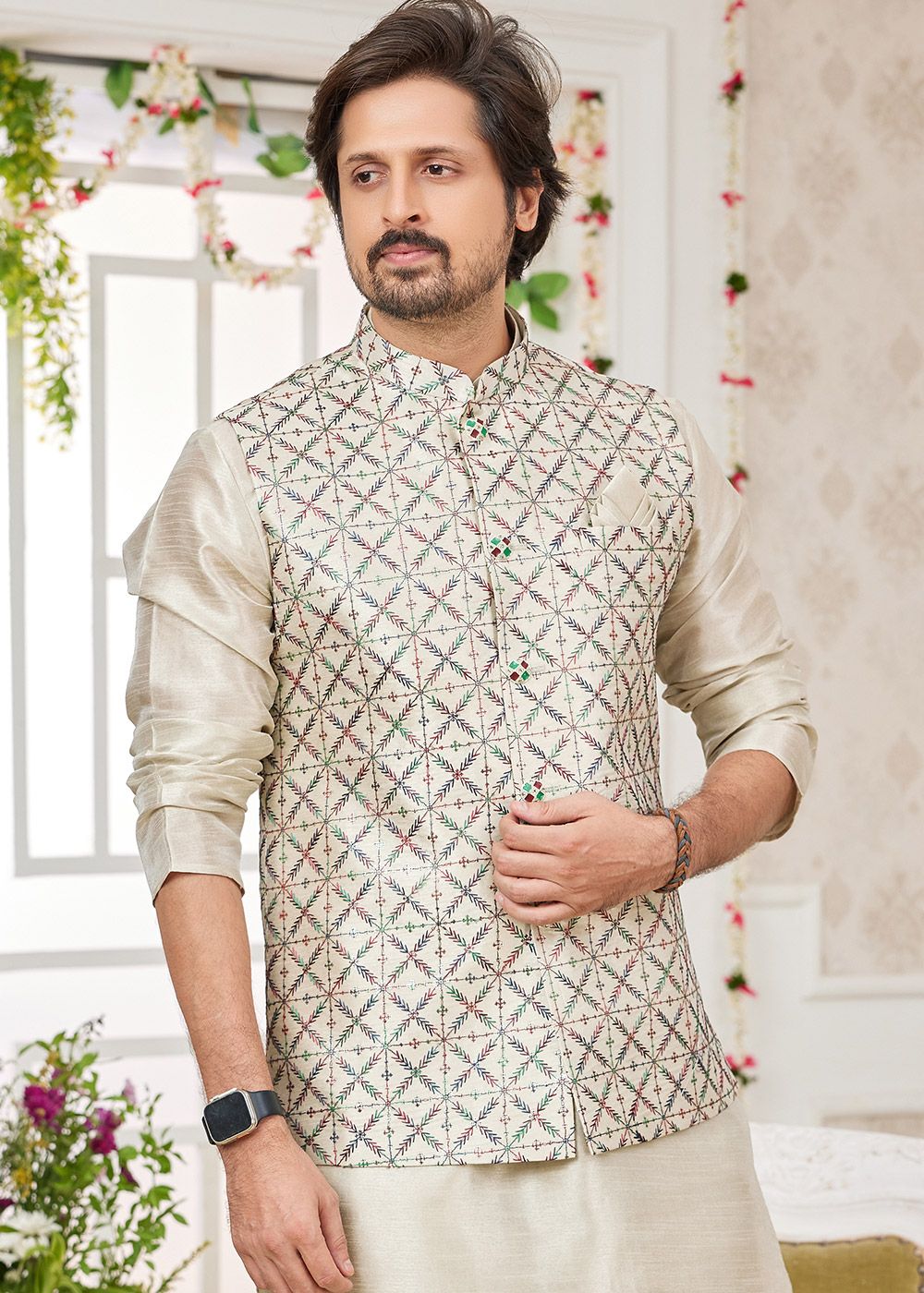 Grey Mirror Work Kurta With Nehru JacketSpecial Price US$57.00 Regular Price US$76.00 -