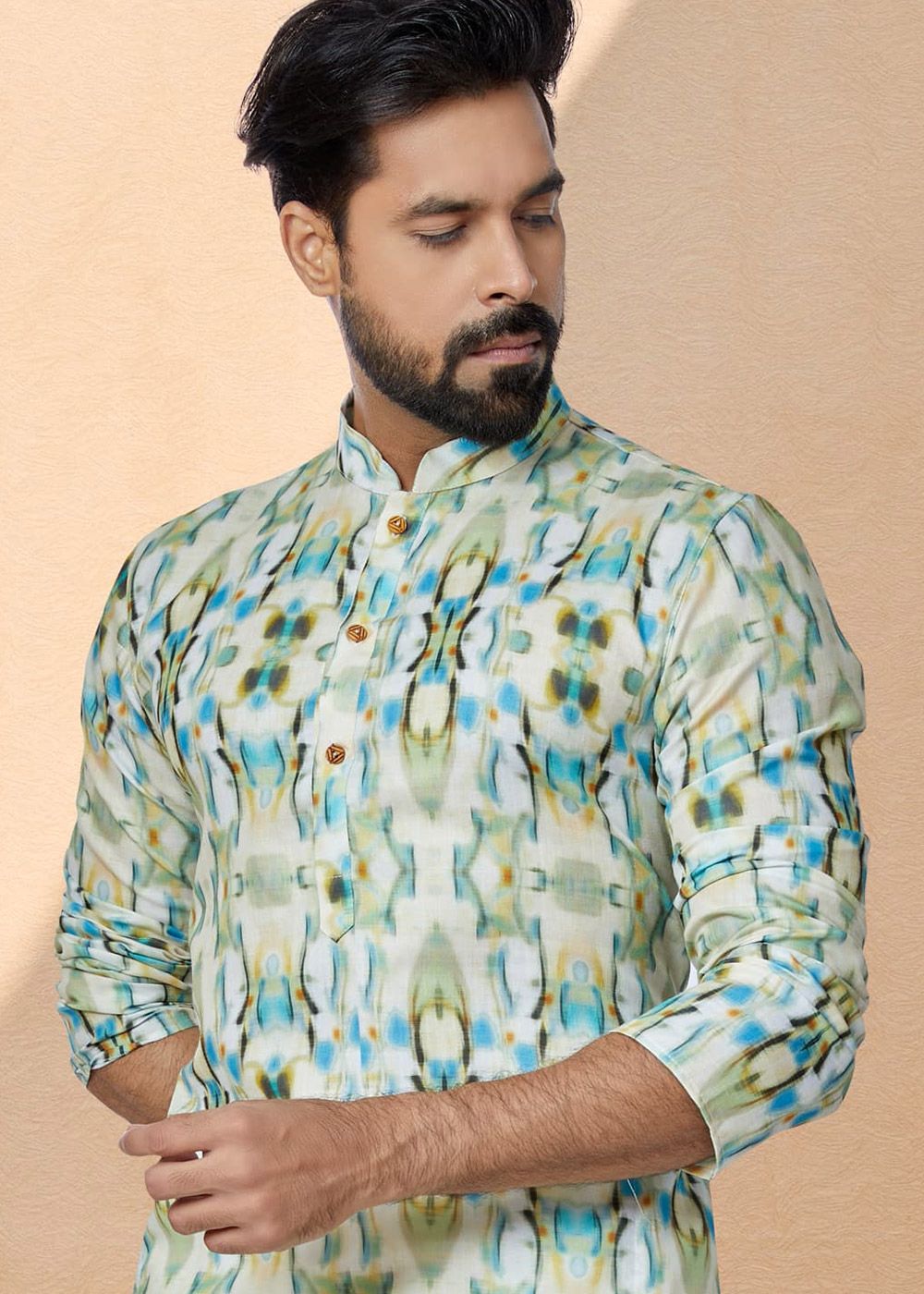 Multicolor Digital Print Men Kurta PajamaSpecial Price US$52.50 Regular Price US$70.00 -