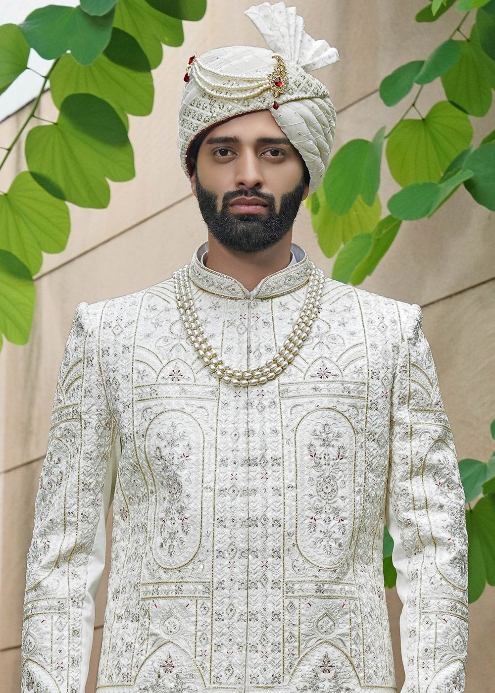 White Embellished Men Sherwani SetSpecial Price US$246.75 Regular Price US$329.00 -