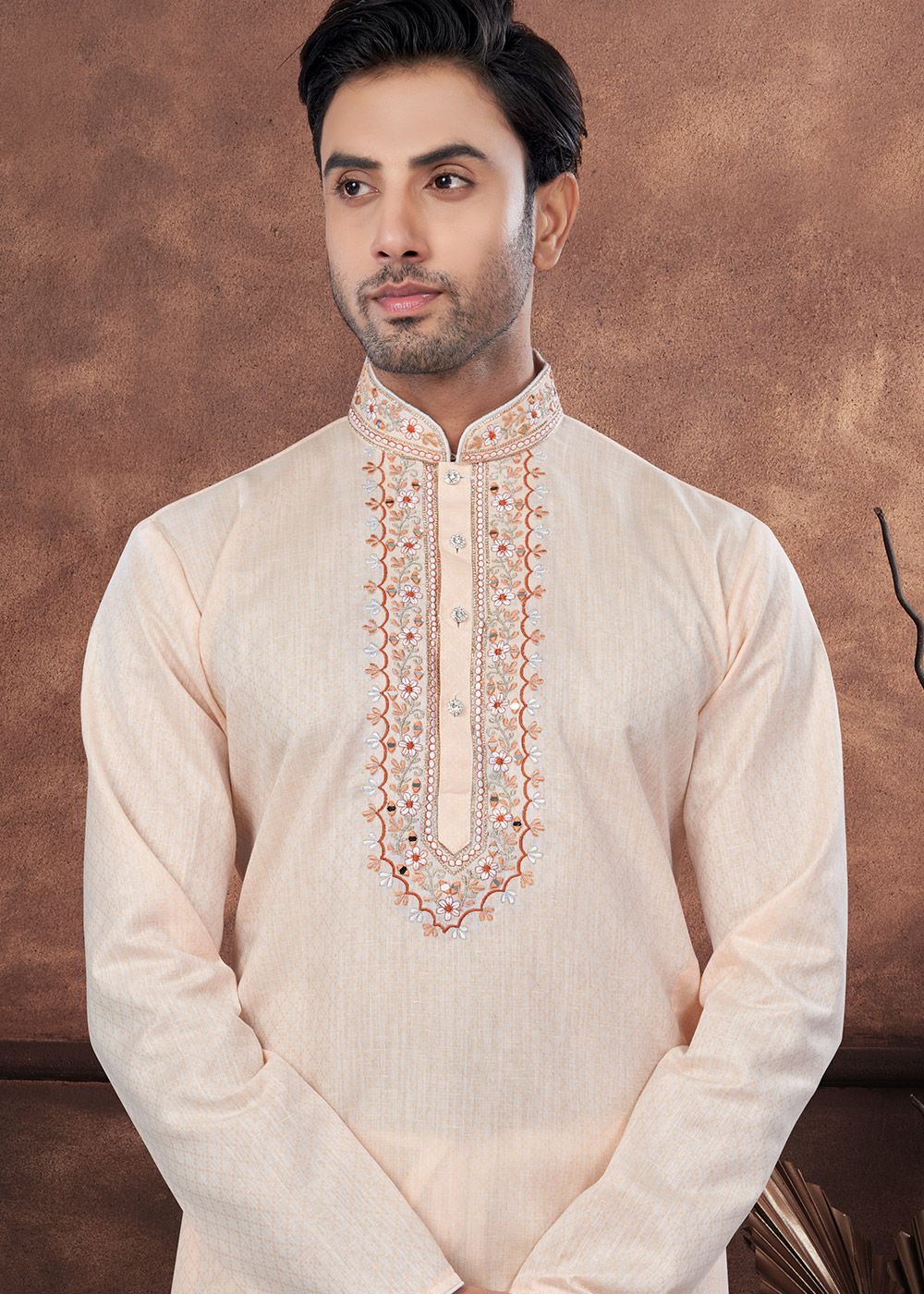 Peach Embroidered Men KurtaSpecial Price US$54.00 Regular Price US$72.00 -