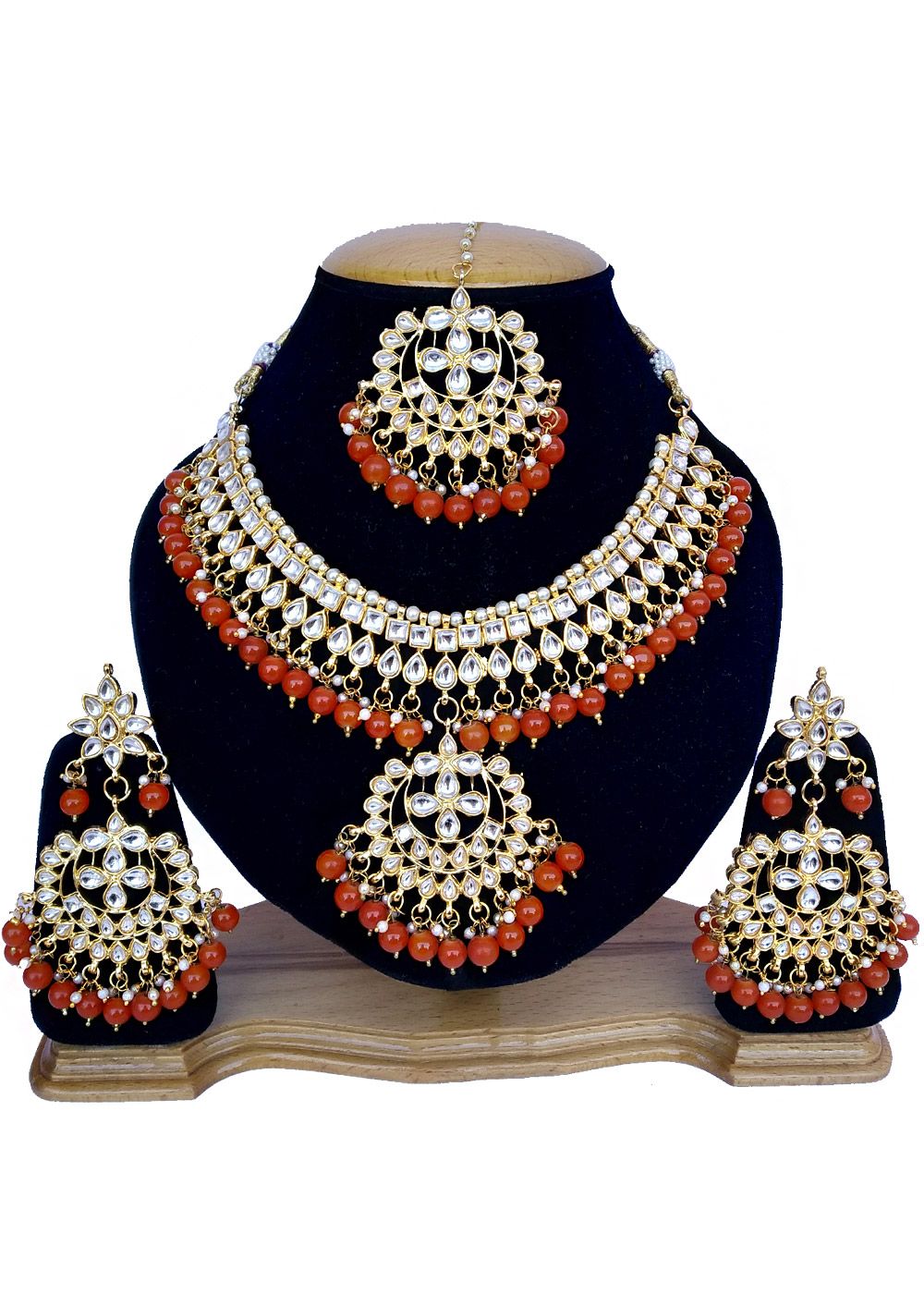 Stone Studded and Pearl Beaded Orange Necklace SetSpecial Price US$47.20 Regular Price US$59.00