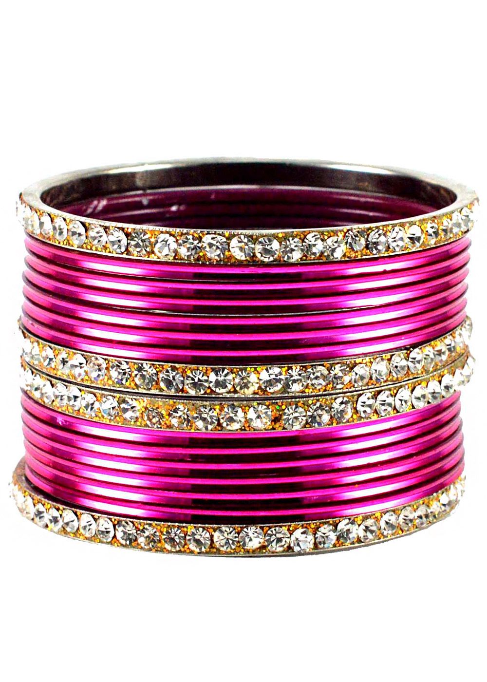 • Featuring a hand crafted brass based pink and golden stone studded 16 piece bangle set.