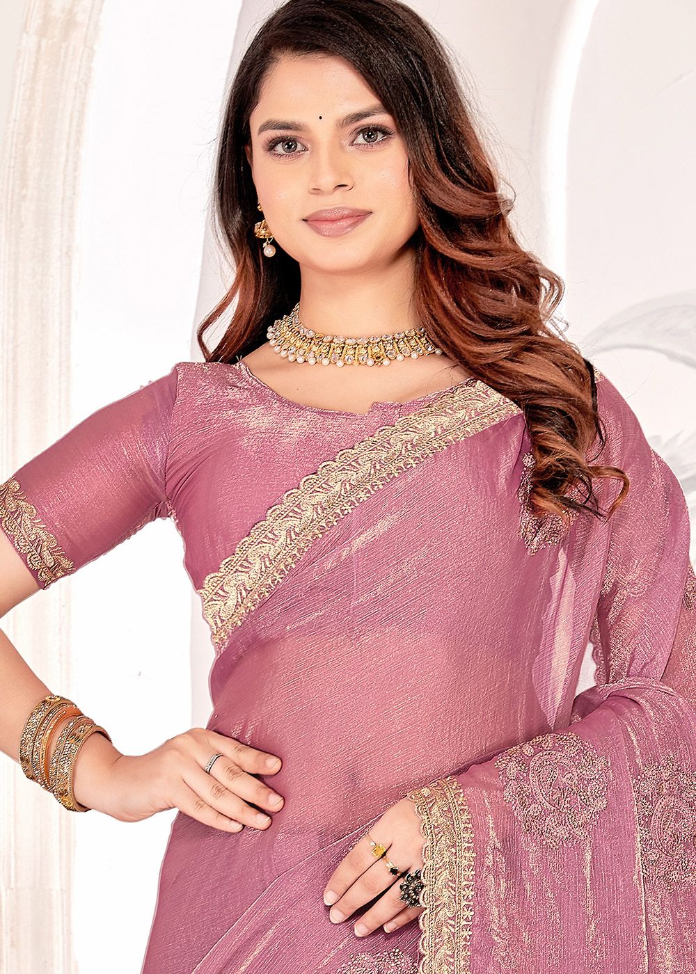 Dusty Pink Net Embellished SareeSpecial Price US$95.20 Regular Price US$119.00