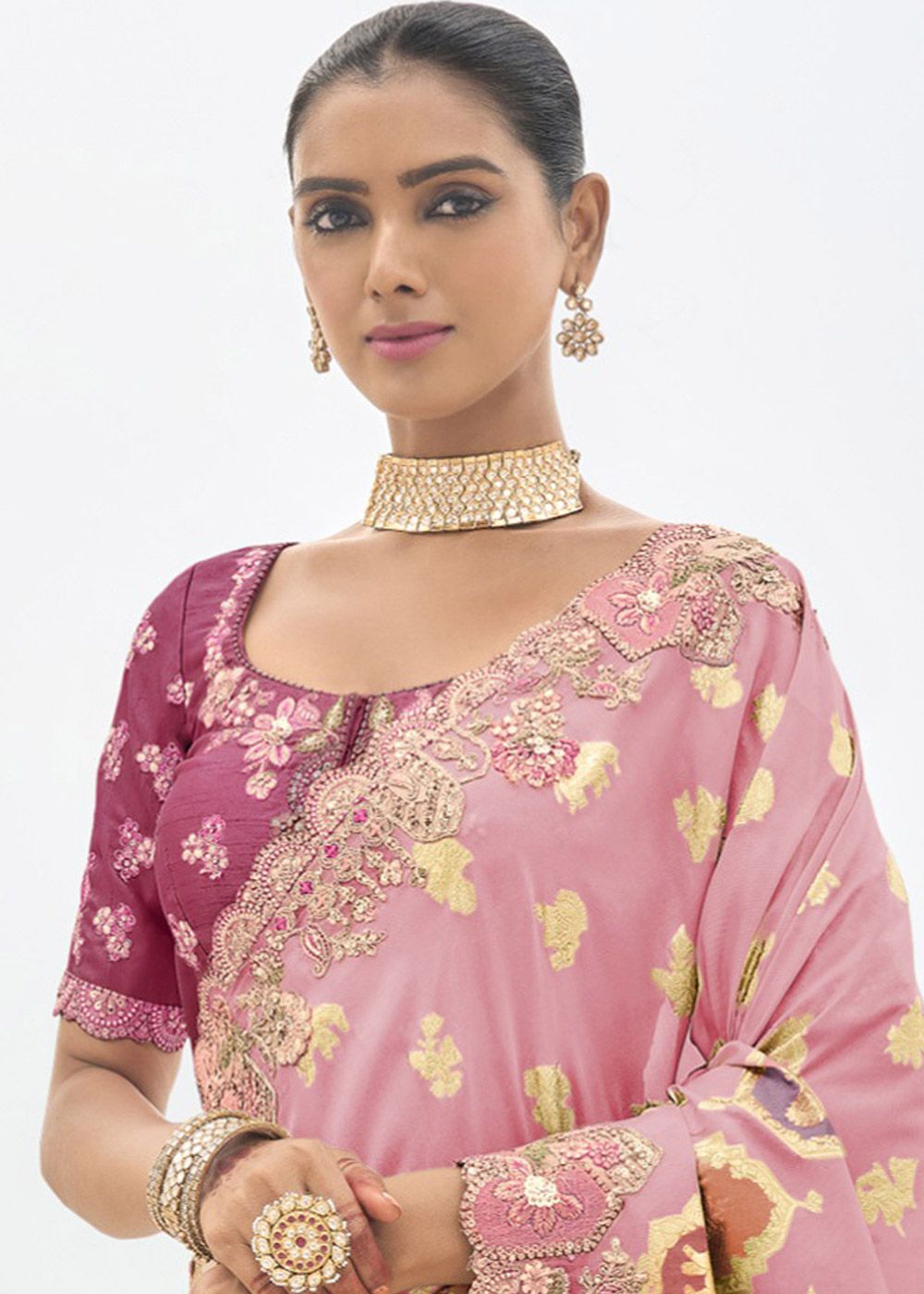 Pink Art Silk Saree In Zari Woven WorkSpecial Price US$63.20 Regular Price US$79.00 -