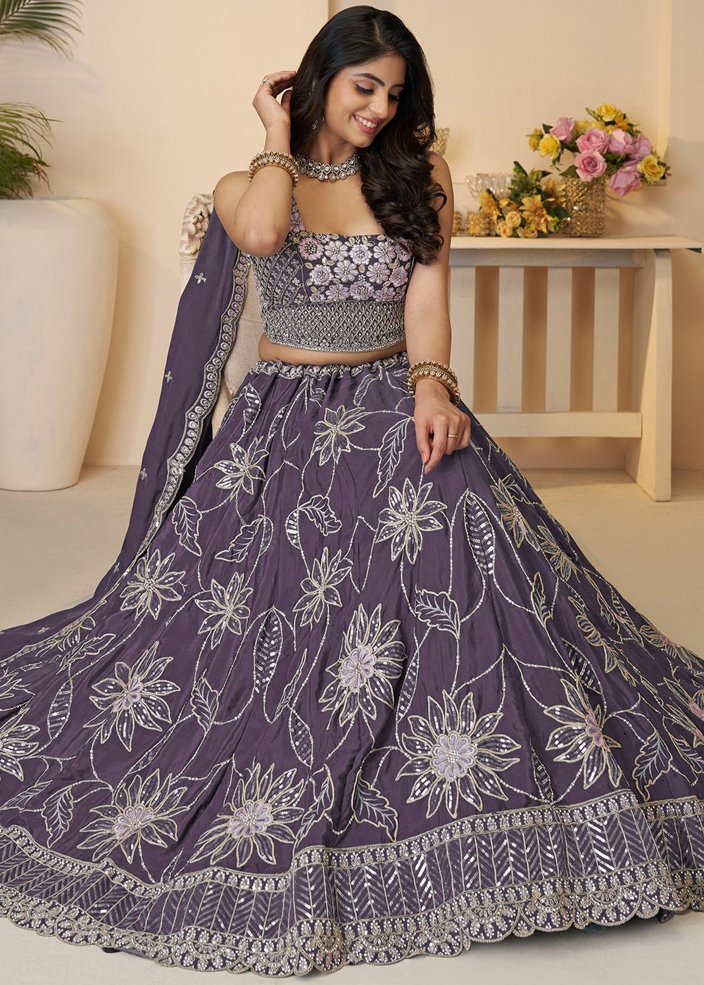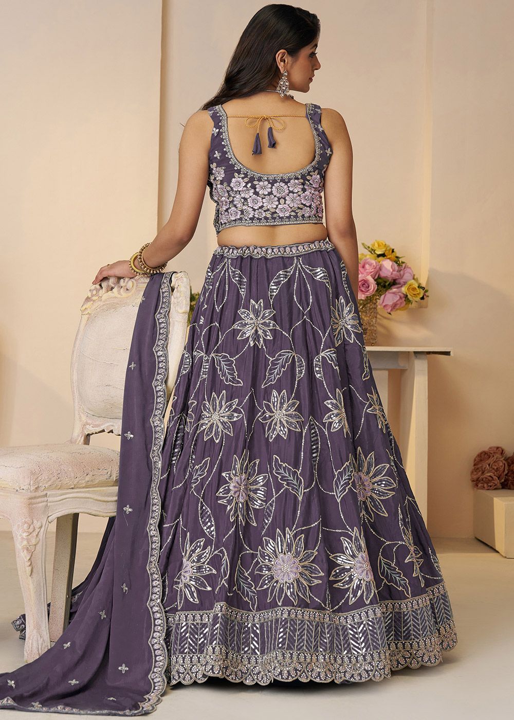 Purple Embroidered Lehenga Choli In ChiffonSpecial Price US$182.40 Regular Price US$228.00