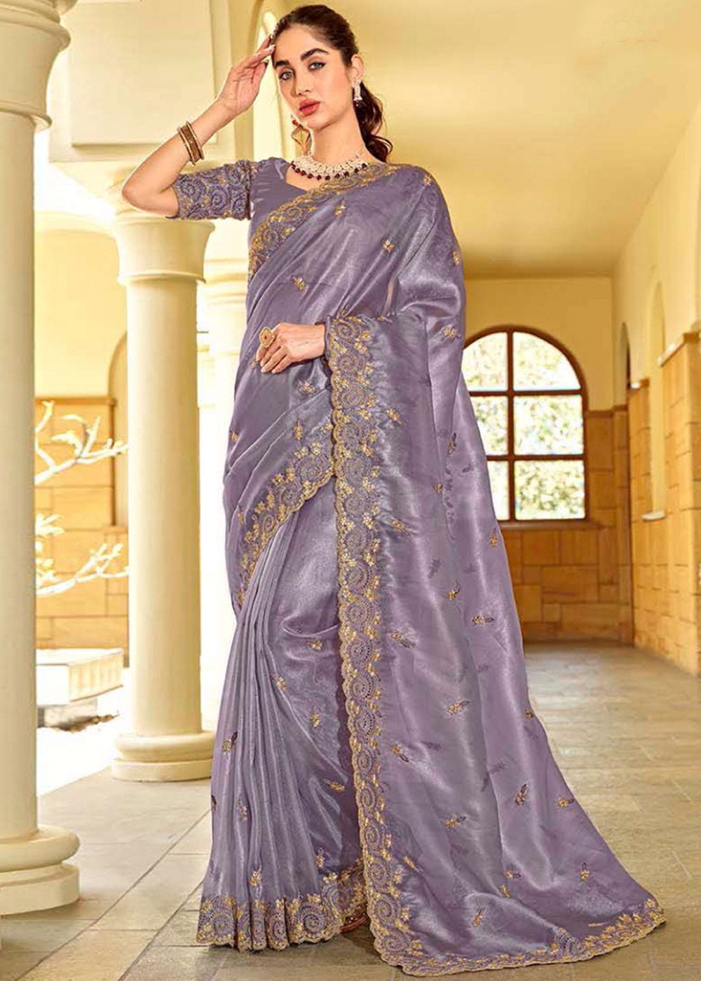 Purple Embroidered Saree In Tissue SilkSpecial Price US$69.60 Regular Price US$87.00 -