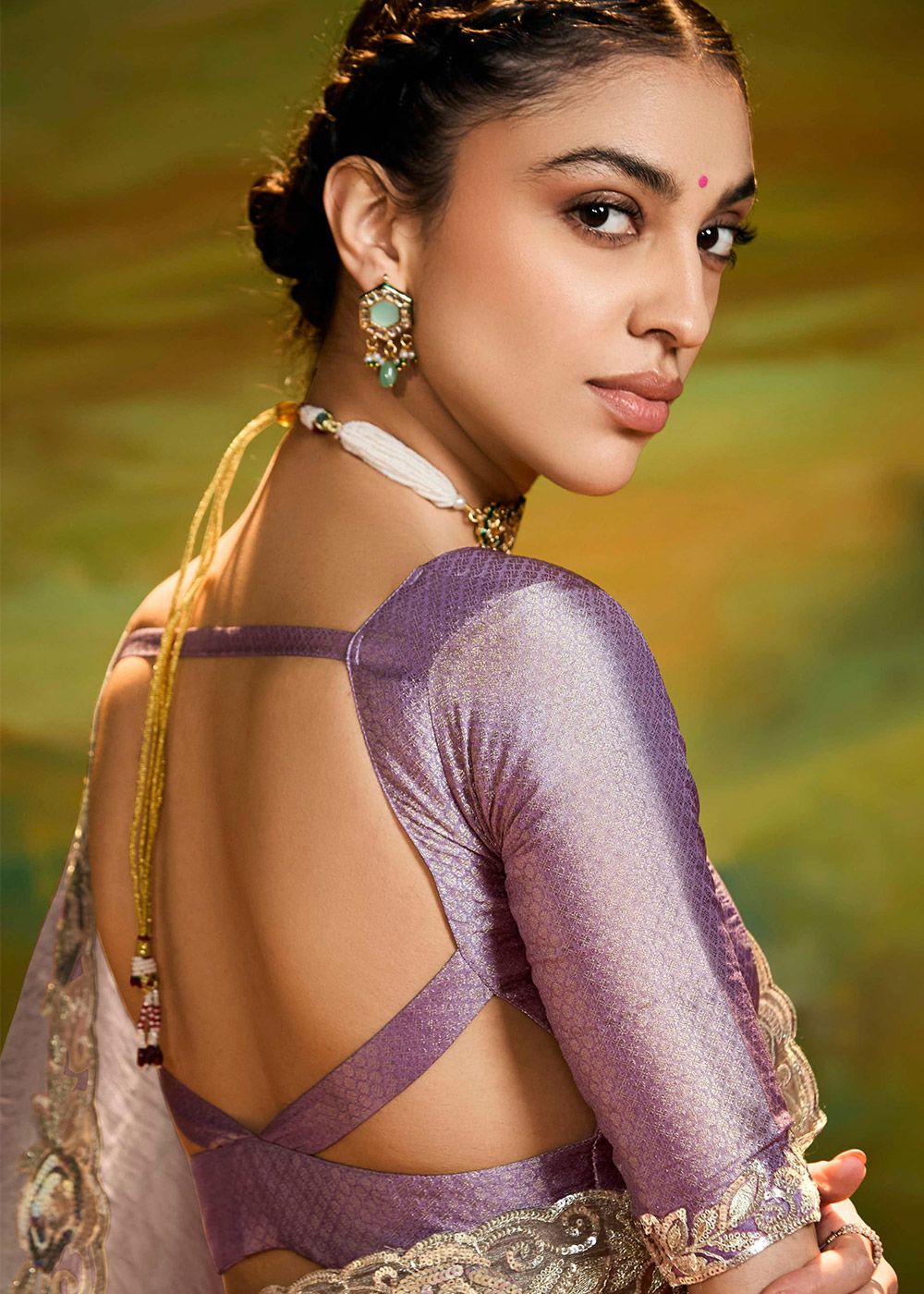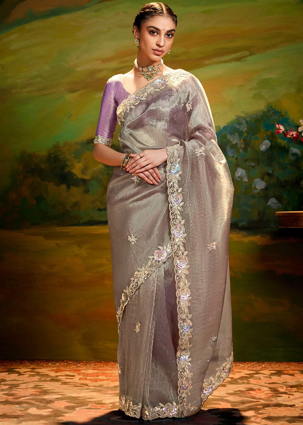 Purple Embroidered Saree In Tissue SilkSpecial Price US$69.60 Regular Price US$87.00 -