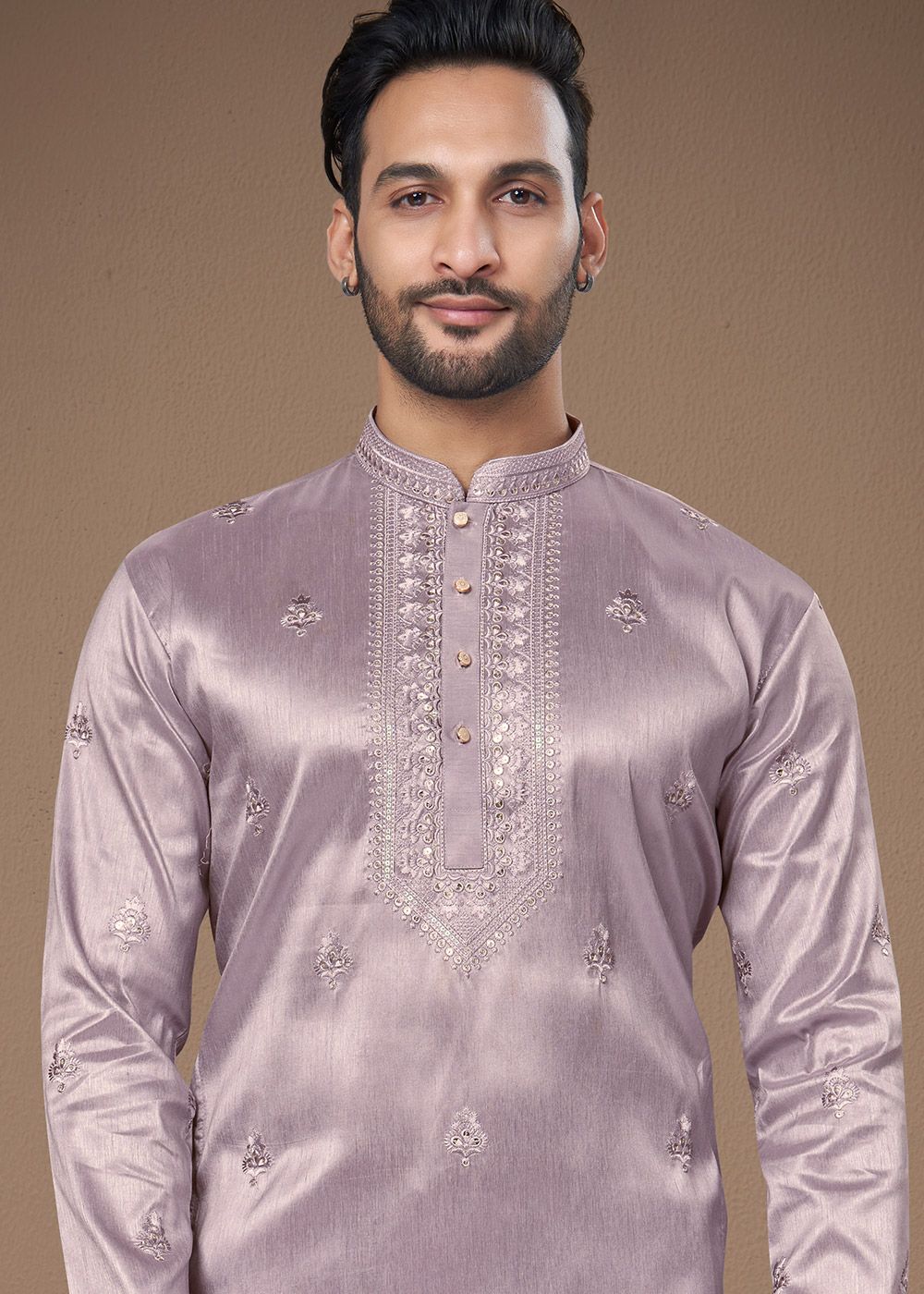 Purple Men Embroidered Kurta PajamaSpecial Price US$87.75 Regular Price US$117.00