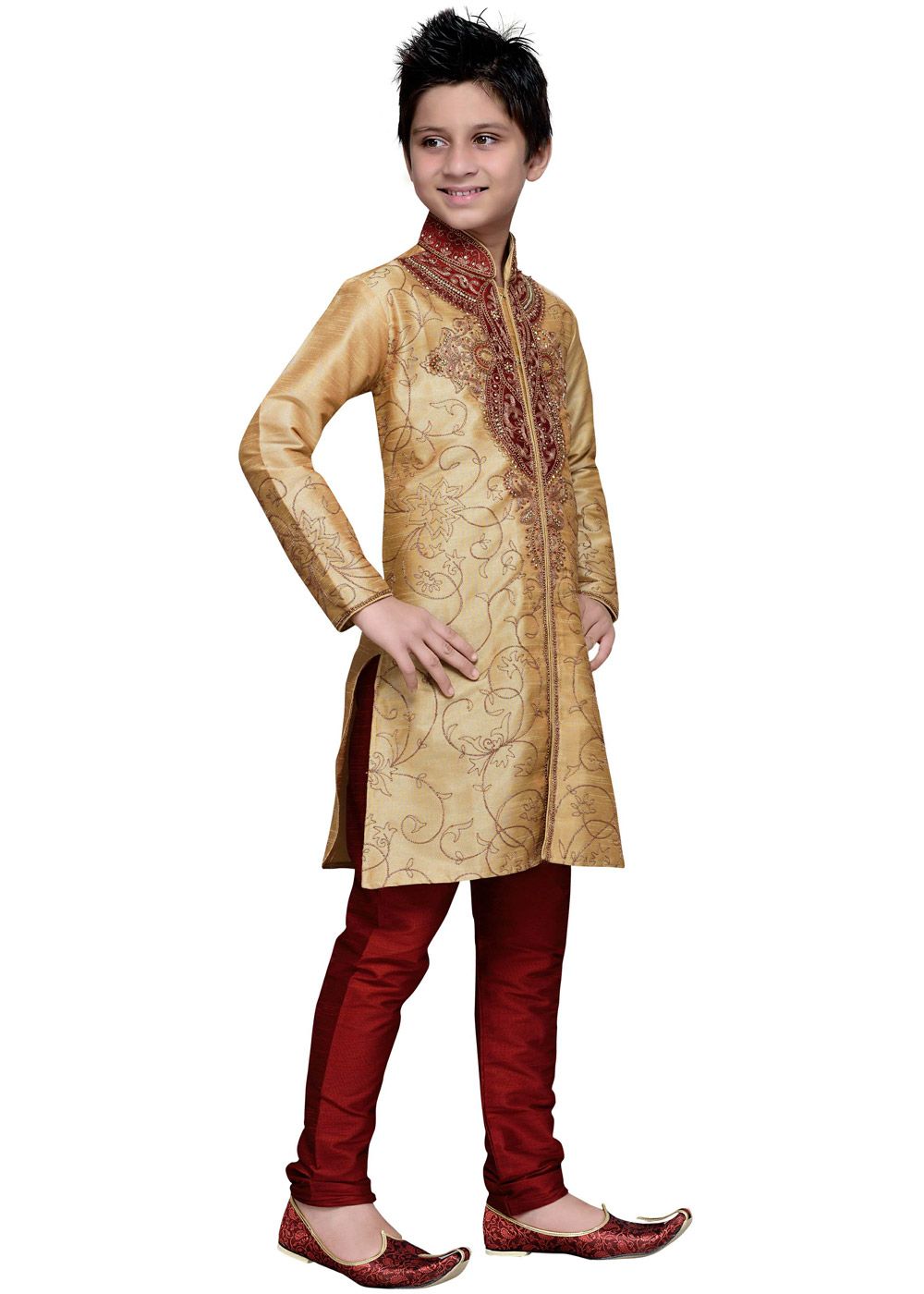 Beige Readymade Woven Kids Sherwani SetSpecial Price US$102.40 Regular Price US$128.00 -
