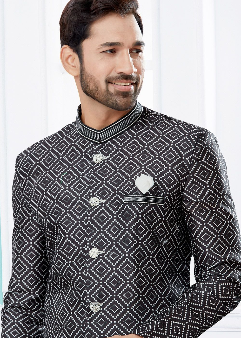 Black Men Indo Western Sherwani In Jacket StyleSpecial Price US$118.50 Regular Price US$158.00 -