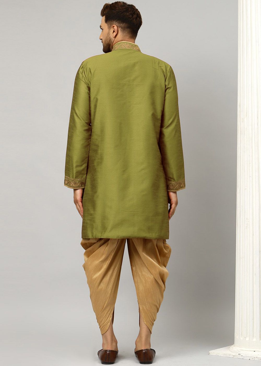 Green Woven Dhoti Style Indo Western SherwaniSpecial Price US$117.00 Regular Price US$156.00 -