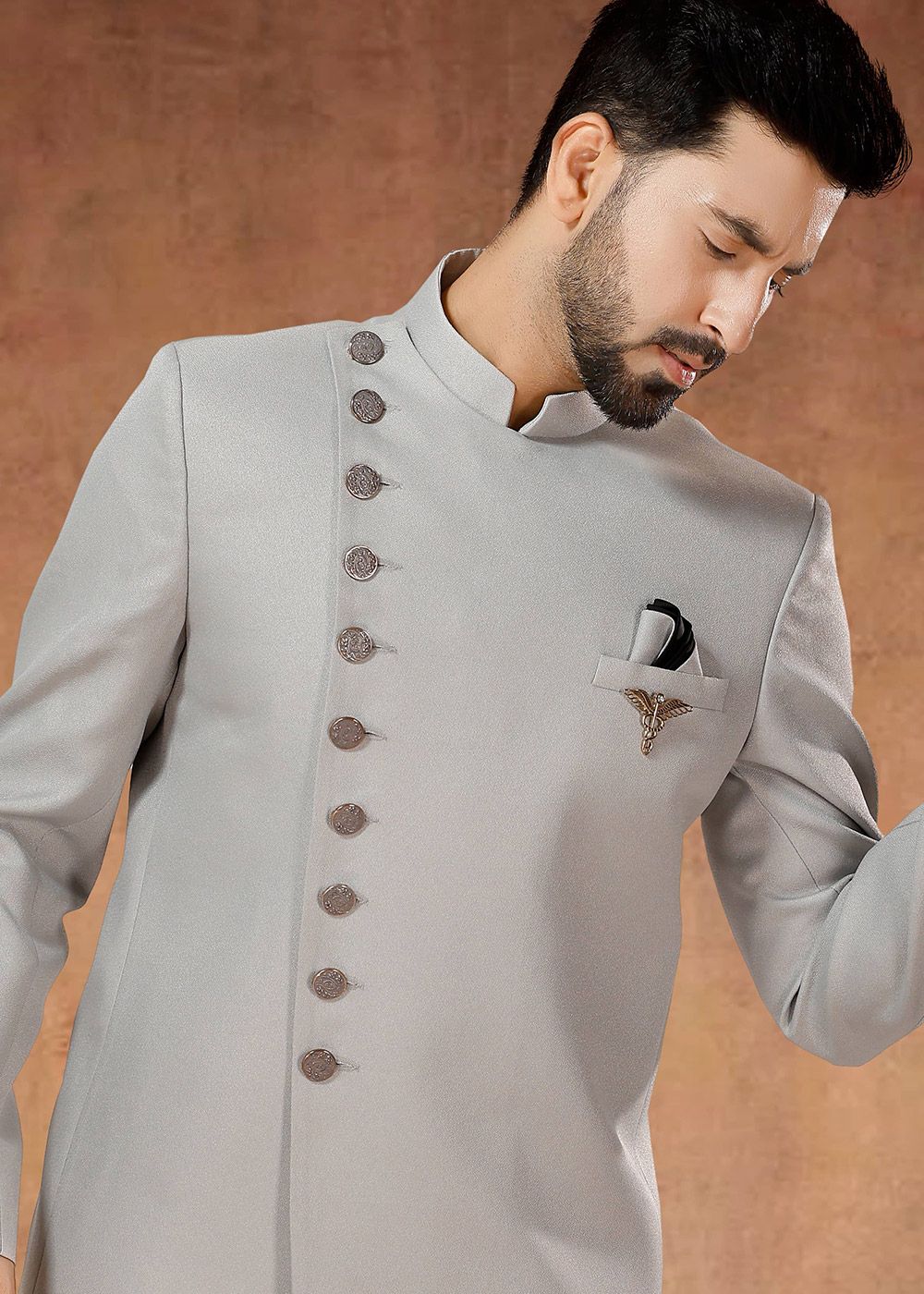 Grey Men Plain Indo Western Sherwani SetSpecial Price US$81.75 Regular Price US$109.00 -