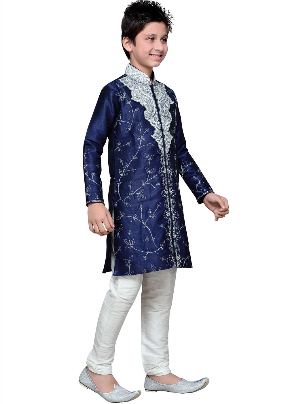 Navy Blue Woven Kids Readymade Kurta PajamaSpecial Price US$56.00 Regular Price US$70.00 -