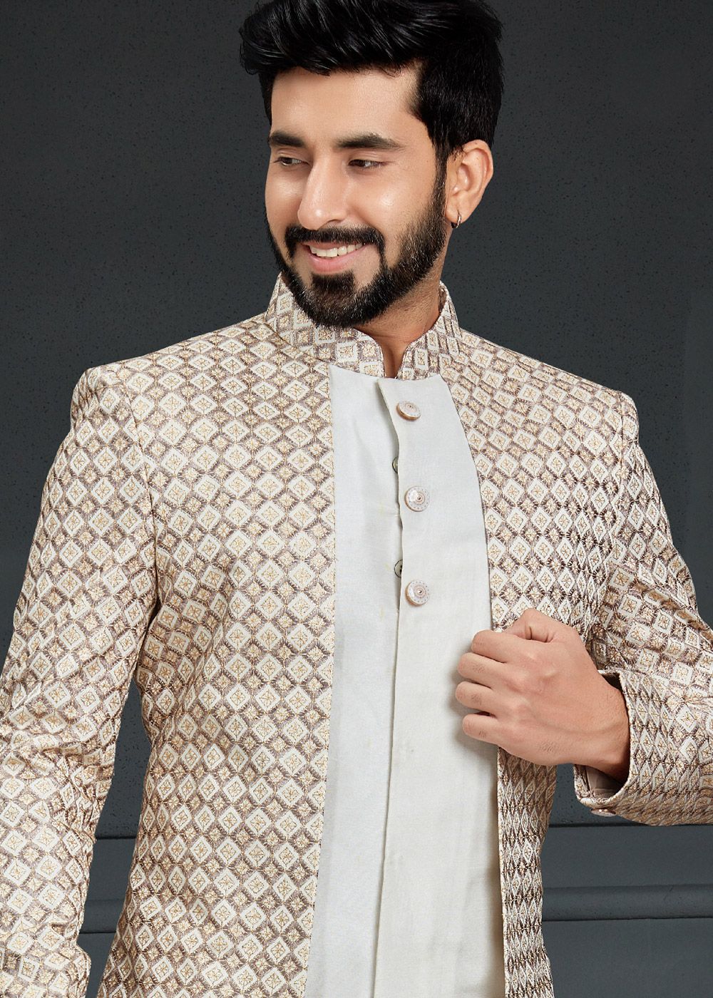 Readymade Off White Jacket Style Indo Western Sherwani Set