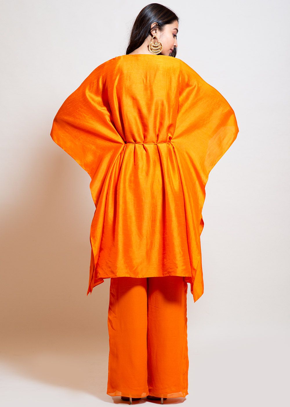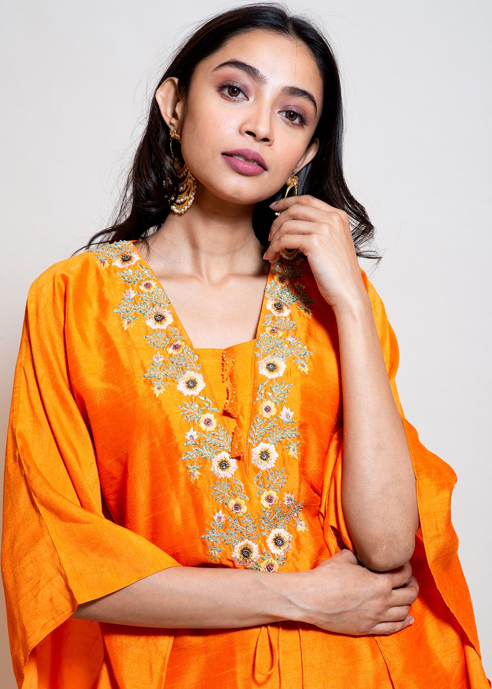 Readymade Orange Embroidered Kaftan Palazzo Set