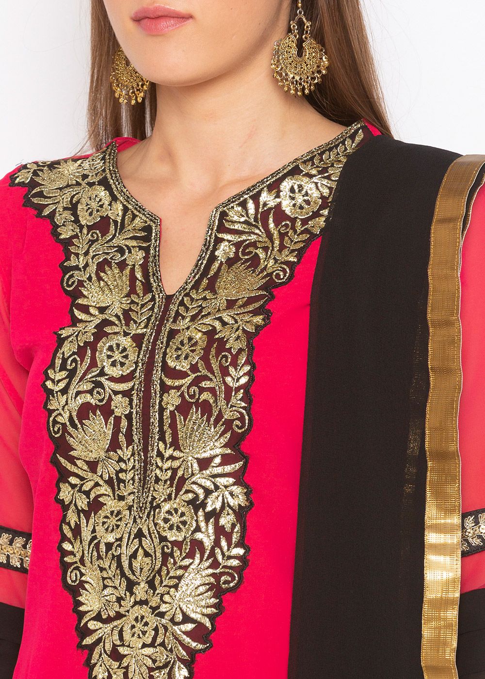 Red Thread Work Georgette Pant Suit SetSpecial Price US$62.40 Regular Price US$78.00