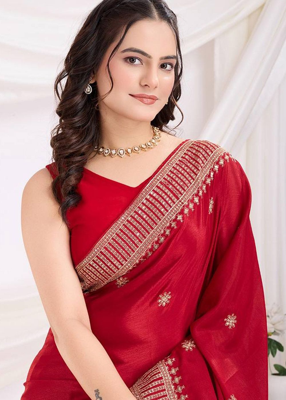 Red Embellished Border Viscose SareeSpecial Price US$79.20 Regular Price US$99.00 -