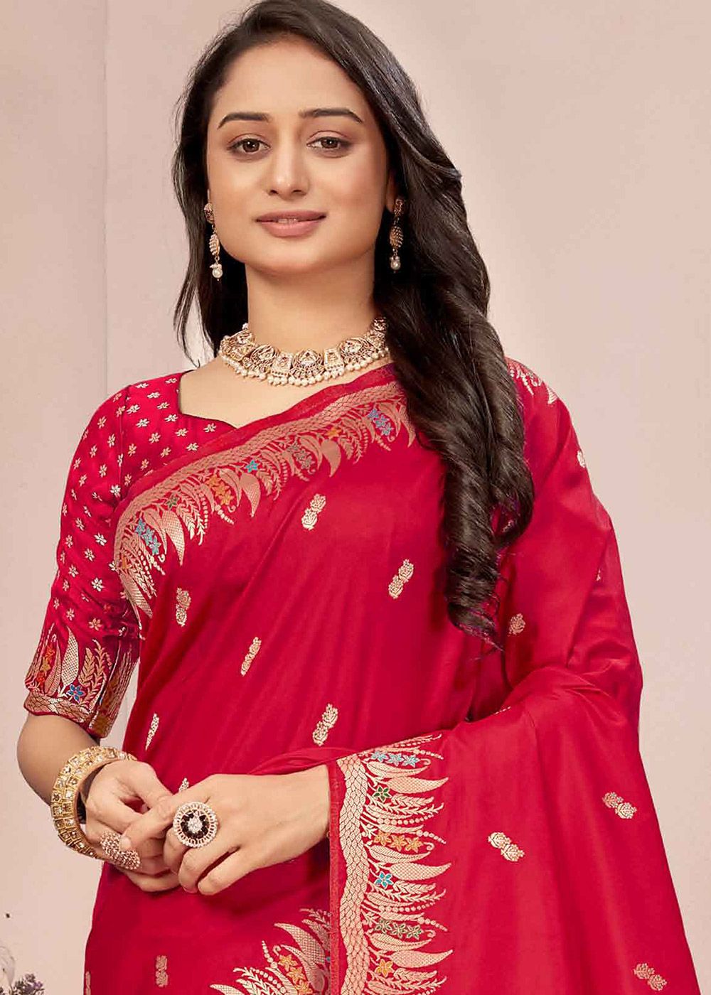 | Color | Saree: Red, Blouse: Red |