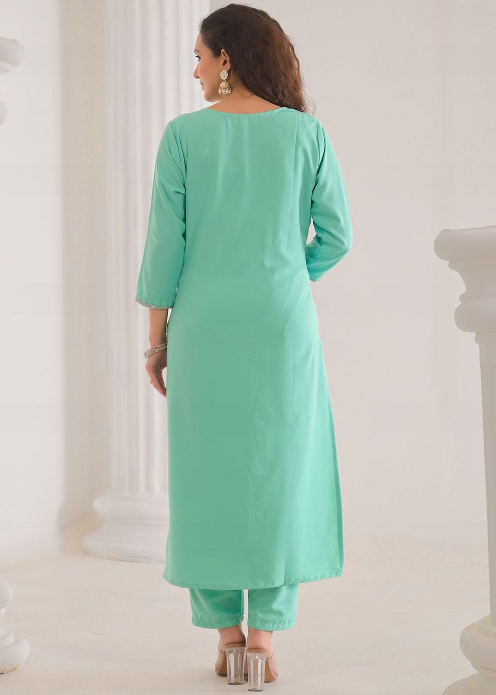 Turquoise Pant Suit In Thread EmbroiderySpecial Price US$76.80 Regular Price US$96.00