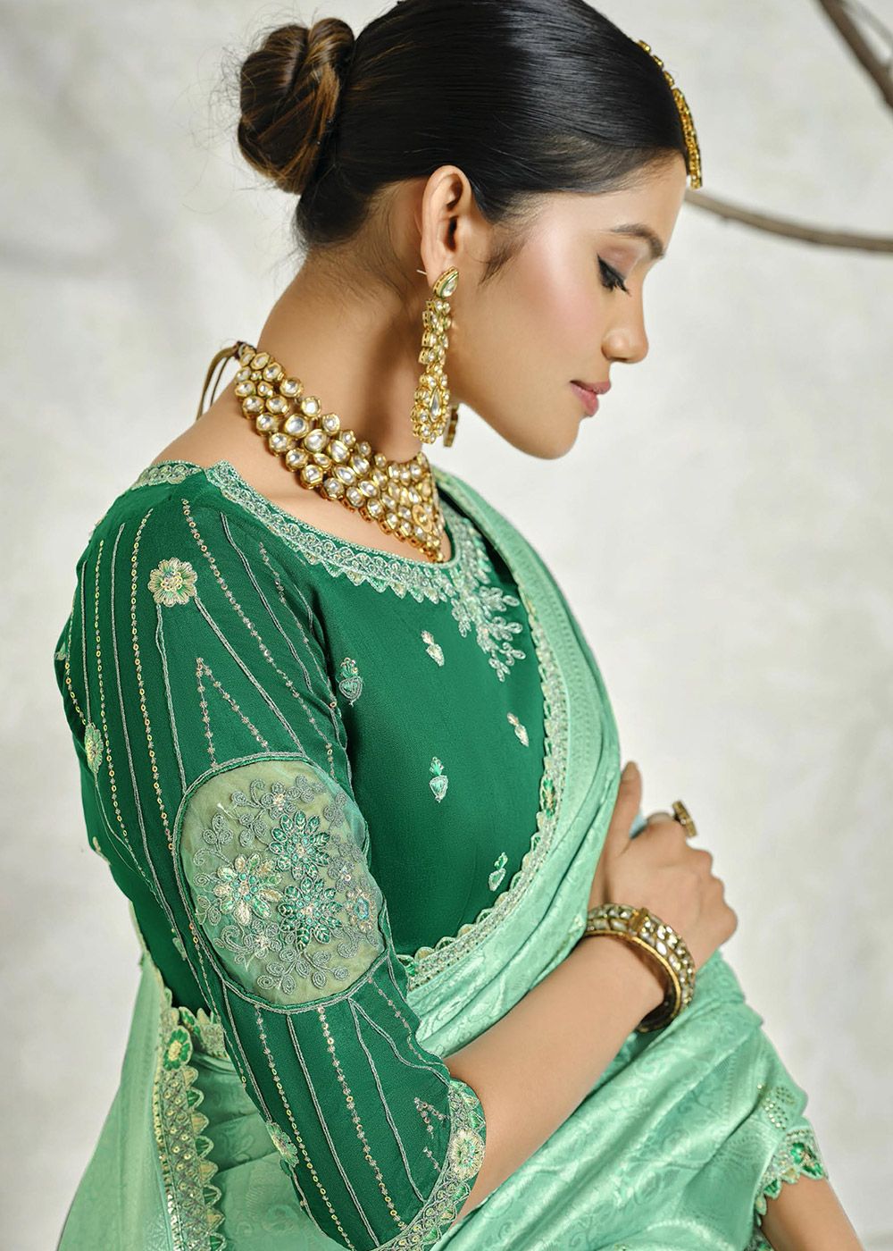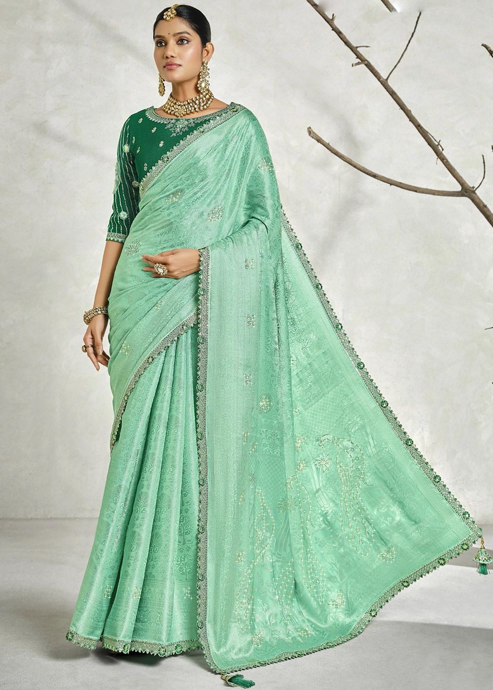 Color | Saree: Turquoise, Blouse: Green |