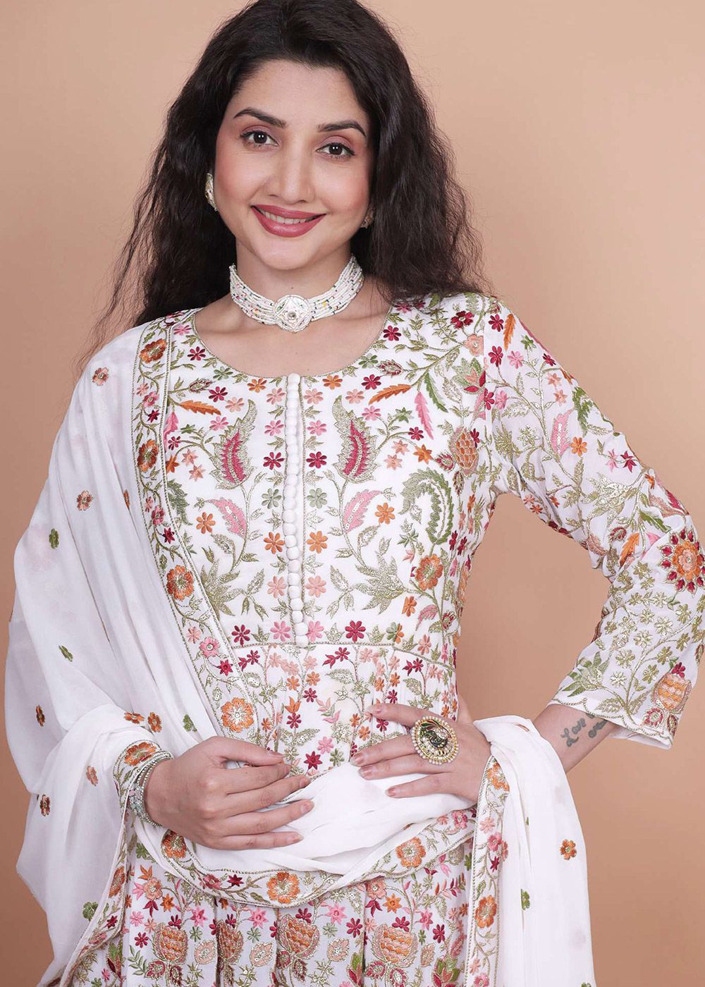 Color | Top: White, Bottom: N/A, Dupatta: White |