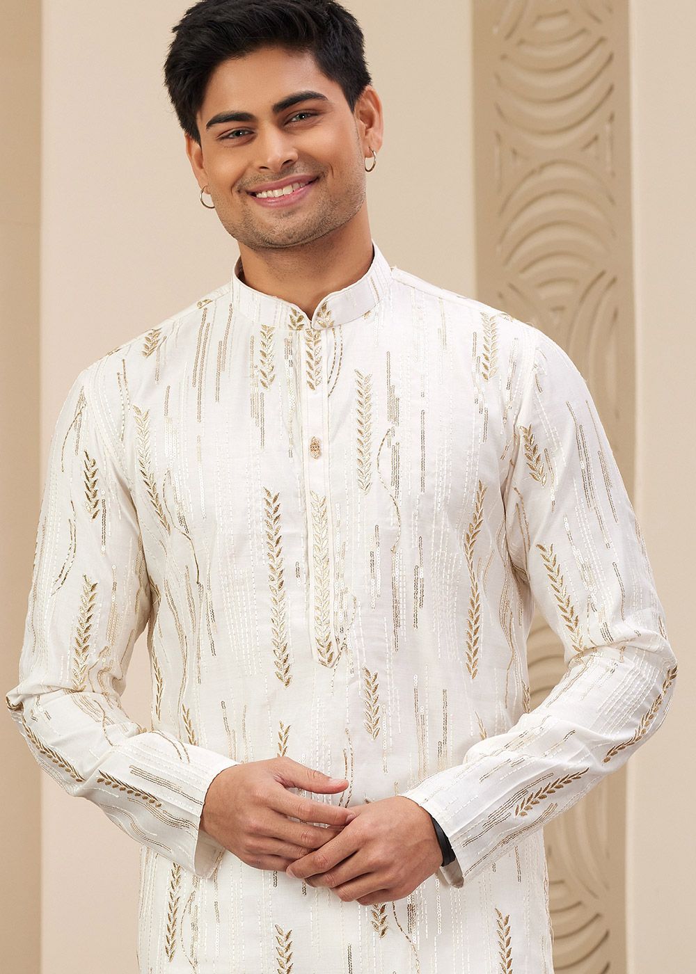 Off White Embroidered Kurta PajamaSpecial Price US$52.50 Regular Price US$70.00