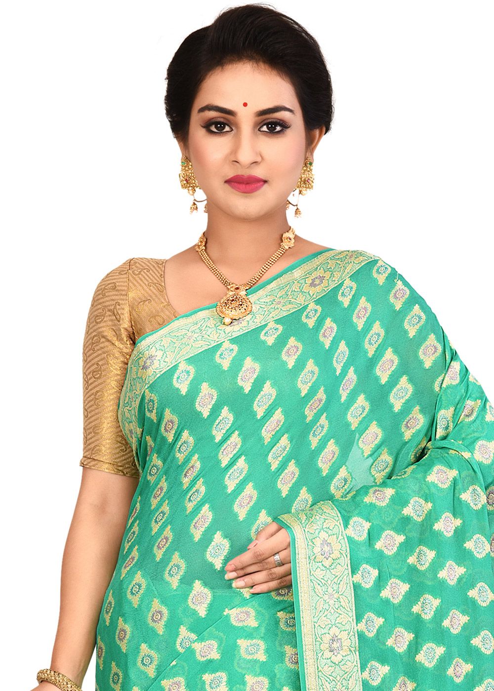 Green Woven Saree With BlouseSpecial Price US$63.20 Regular Price US$79.00